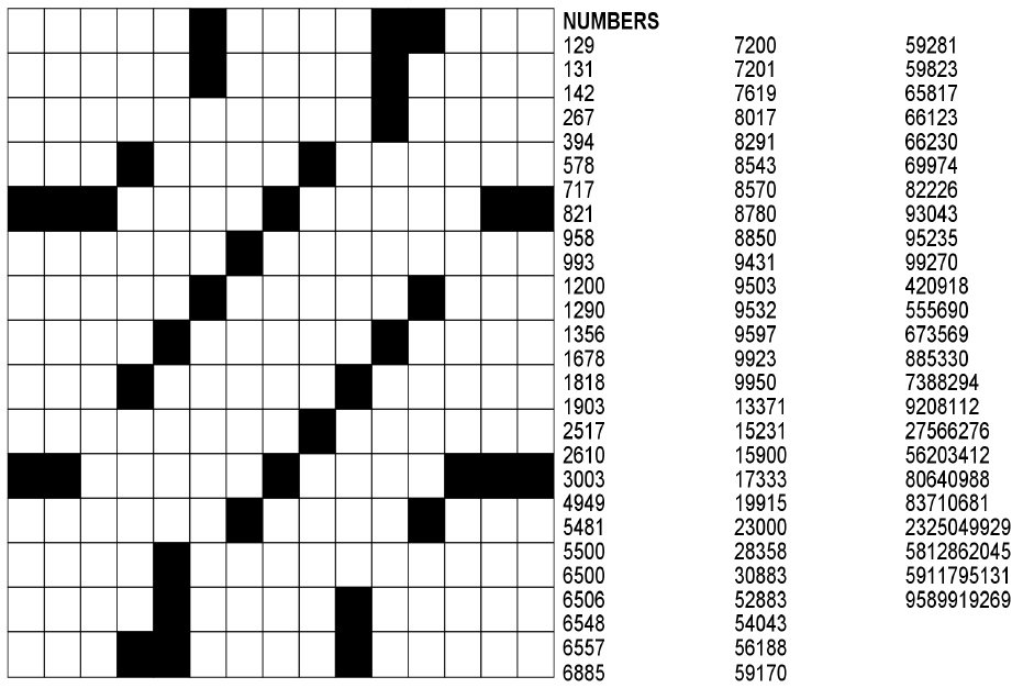 50 Number Fill-Ins Puzzles Printable with Solutions (PDF)